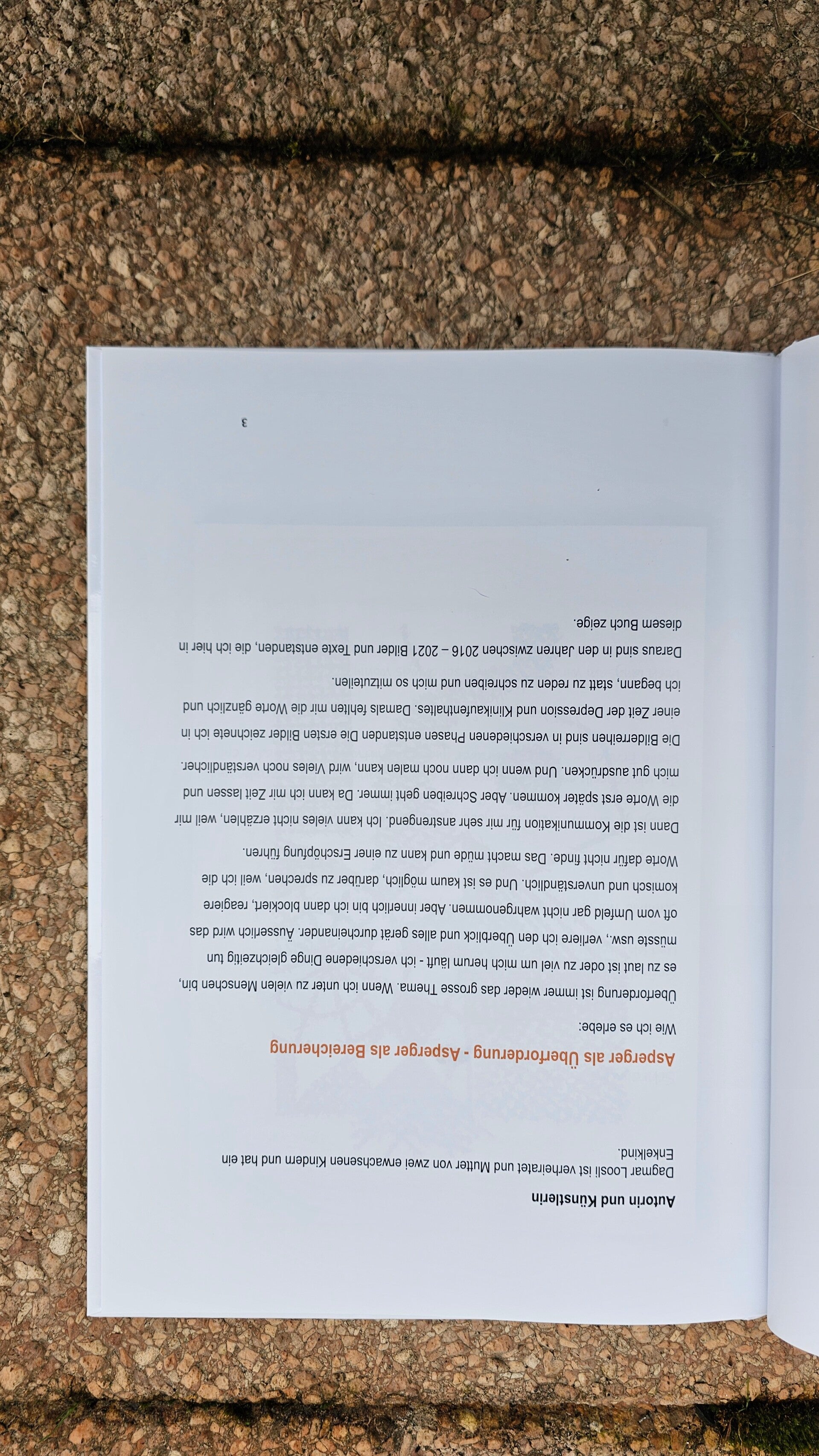 Ein Buch mit Bildern aus Tusch, Aquarell und Texten von Dagmar Loosli. Eindrückliche Einblicke in ihre Welt mit einer Autismus-Spektrum-Störung.